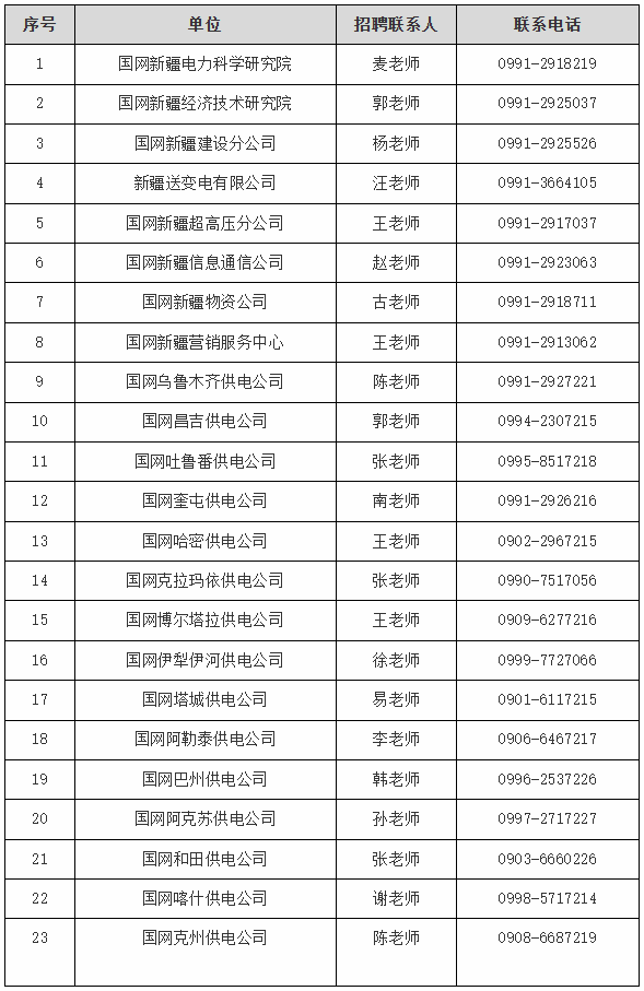 1.国网新疆电力有限公司招聘信息仅通过“国家电网有限公司人力资源招聘平台”网站及国网新疆电力有限公司官方微信公众号“国网新疆电力”“国网新疆电力有限公司”发布。对于发布虚假招聘信息的个人或机构,我公司保留追究法律责任的权利。对应聘者因虚假招聘造成的损失,我公司不承担任何责任。